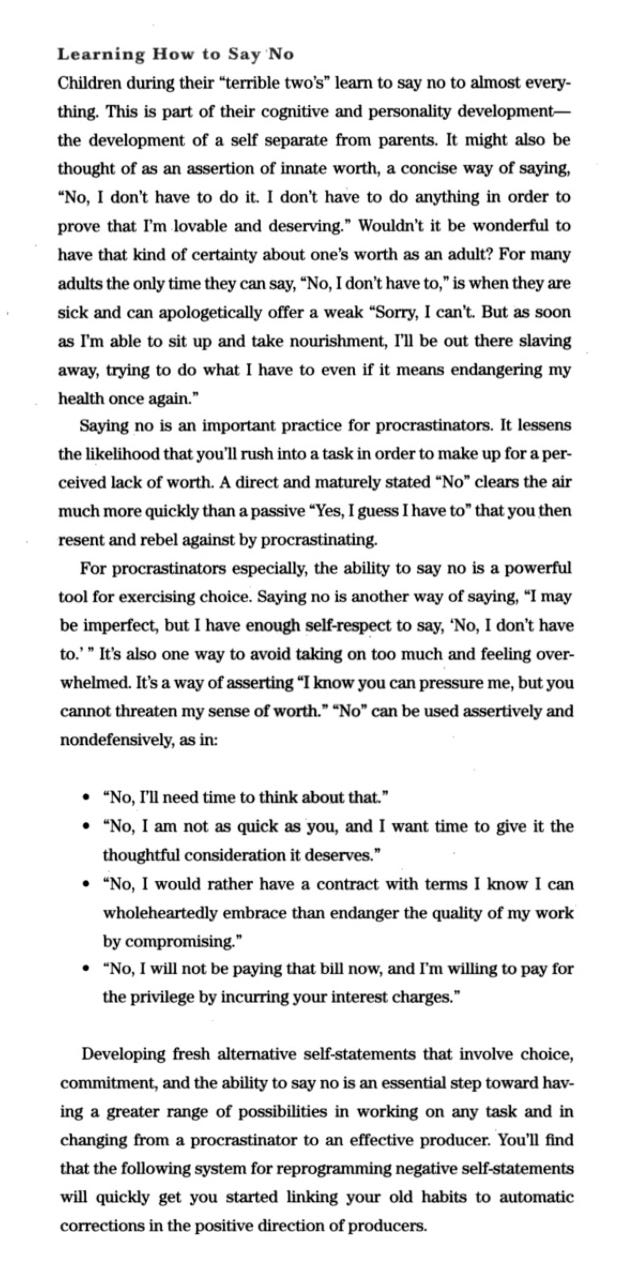 Below is an excerpt from Neil Fiore's The Now Habit: A Strategic Program for Overcoming Procrastination and Enjoying Guilt-Free Play: